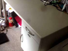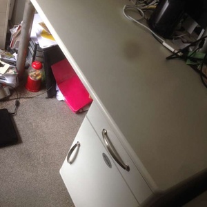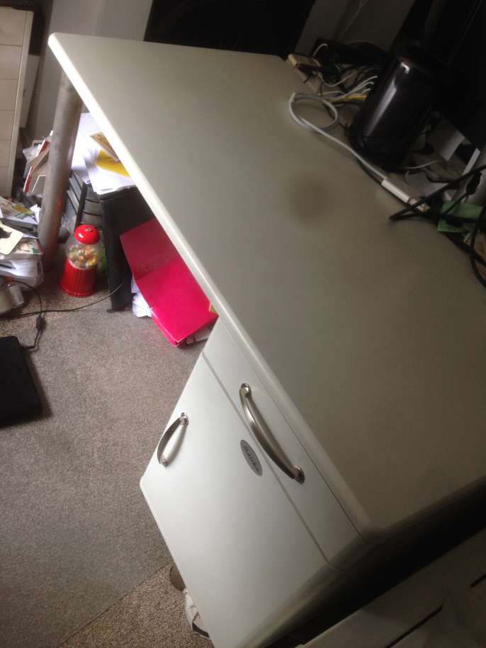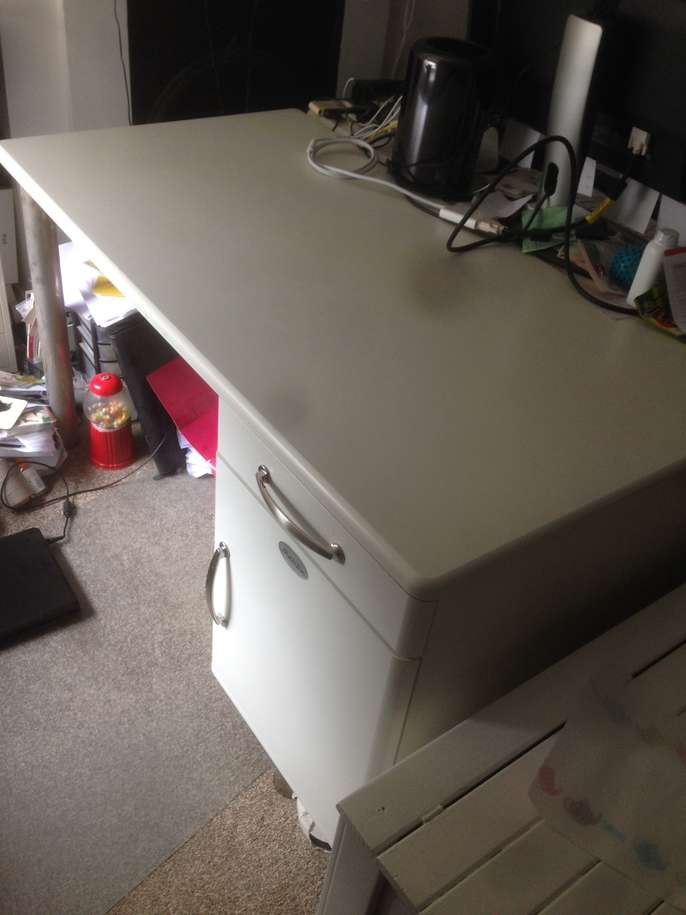 Clearing out the office to give our son a bigger room! Originally from John Lewis In reasonable condition. The only damage is on the edges of the drawers and cupboards. Can easily be painted over though. I have added photos. Measurements - 130cm x 70cm top Height is 72cm Thickness of the table top is 3cm There are 2 available. Exactly the same but the wear is slightly different as you can see on the photos. Sturdy desks that have served us well! Available from Saturday afternoon 22nd July