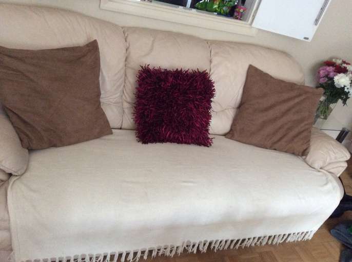 2 X 3 seater leather sofas Cracking to the leather but we've been using cream throws on them, as photos show, which are fabulous and they're great for someone on a budget. Very comfy which is why we don't want to just throw them away when someone can get good use out of them! Throws not included! MUST GO BY THURSDAY 23rd MARCH 2017! FREE - first come first served I'm afraid!