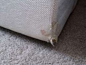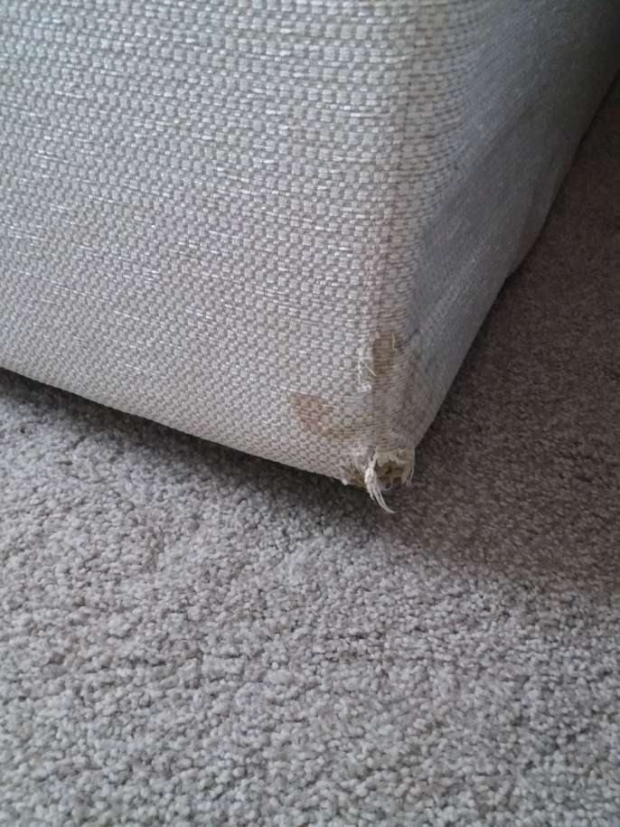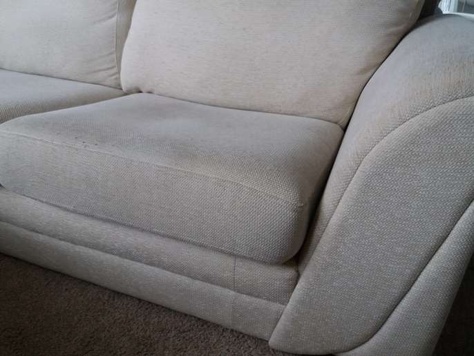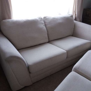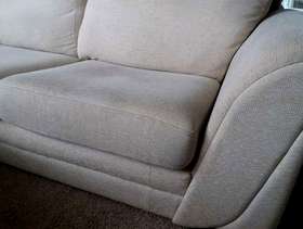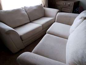 2 x light cream DFS sofas 205cm l x 95cm d, in great structural condition, however have damage on back bottom corners from house rabbit. would cover up with iron on motifs or something similarly creative!