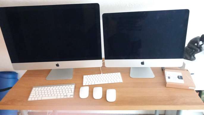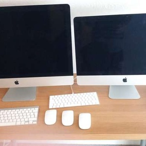 Returned to Factory Settings. In good condition. 21.5inch and 27inch. Plus 2 keyboards, 3 mice and a HDMI cable