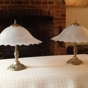 2 x ceiling lights for hanging in reverse to shown in the picture. The shades are approximately 30 cm across at their widest.