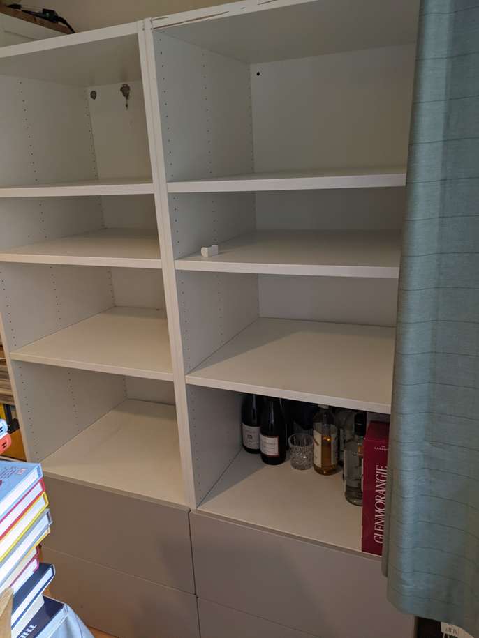 We have two of these shelving units to pass on, a few years old and would benefit from screws being tightened. 2 grey drawers in each. Quite deep so store lots. A few scratches, and an extra hole made in the back of one of them. Need to move on quickly.