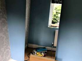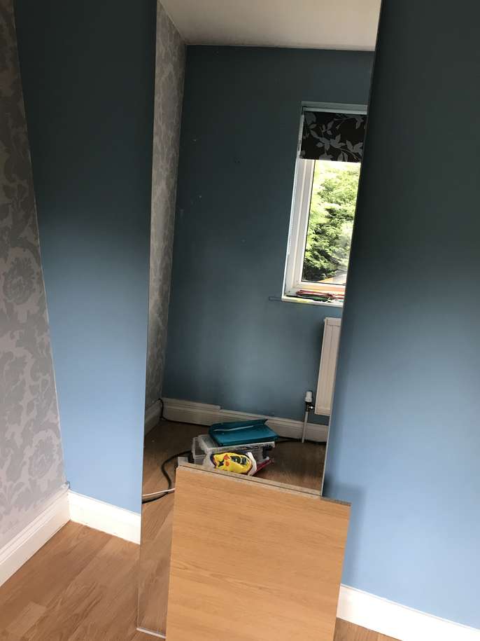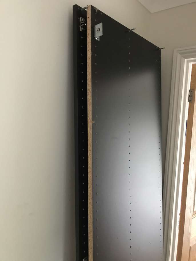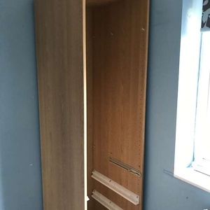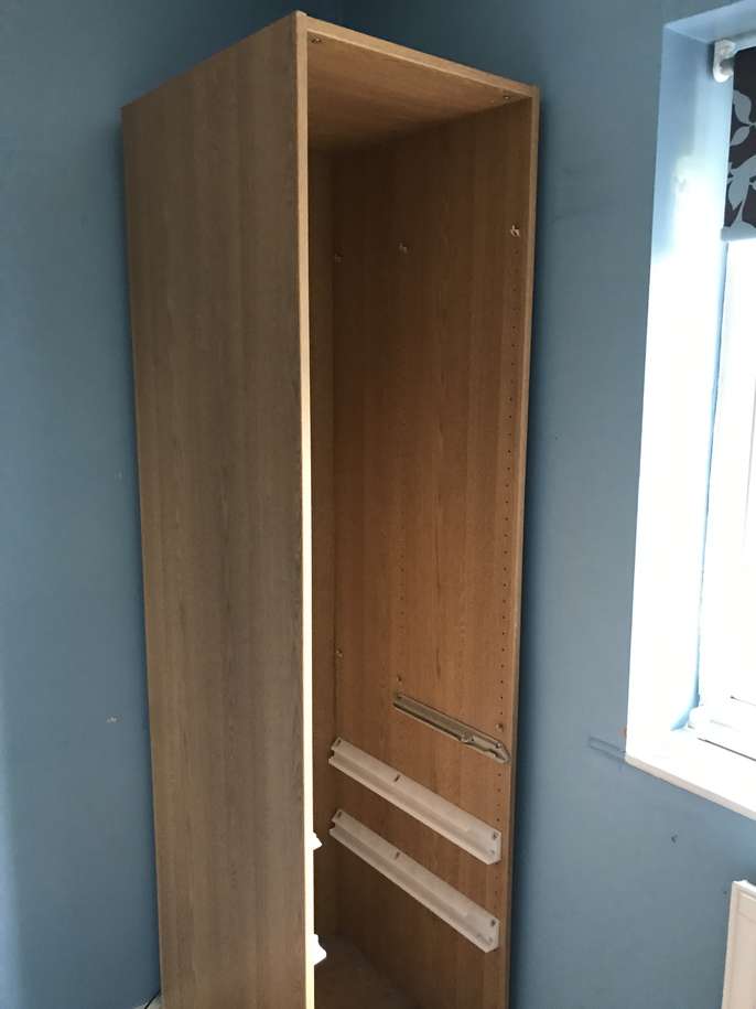 2 single Ikea wardrobes, one teak and one black/brown, both with mirror doors. Good condition with interior fittings.
