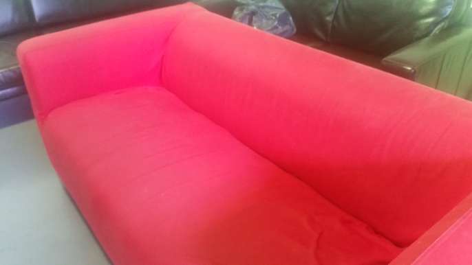 Two large sofas available. Red cotton covers. To be picked up ASAP from business in Brighton Marina. Please message or call 01273253679.