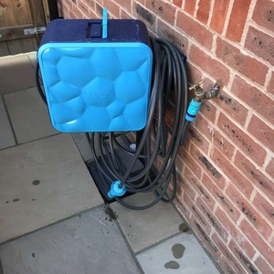 The hose no longer retracts into the box but will work fine as a hose. We can supply wall fixings.