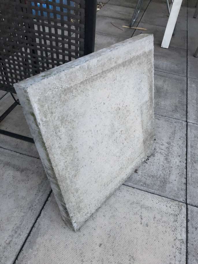 Used widely by public bodies in high foot traffic areas, sometimes referred to as council slabs due to its use. Length 450mm Width 450mm Thickness 50mm Weight 23kg per slab Material concrete Colour natural Brand Marshalls Age 2 years Quantity 206 Coverage 41.7sqm Collection in person from the sixth floor of an apartment block (lift available: capacity 600kg - approx 10 lift journeys). Parking right outside the door to the building. This listing is for the whole quantity - all slabs must be removed, no offers for part of the quantity please. Adjustable plastic paving support pads to level the patio included if required. Located in Willesden Green NW2.