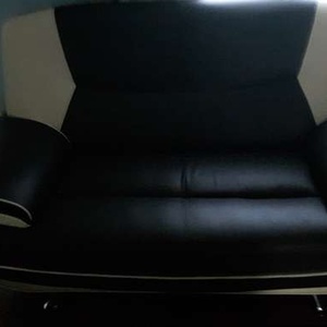 Cream and brown faux leather with chrome legs. 10m old, smoke free home. Collect N Abingdon. You will need to unscrew the legs to get it oit the door. Tiny bit of damage under arm cushion, not visible unless you look.