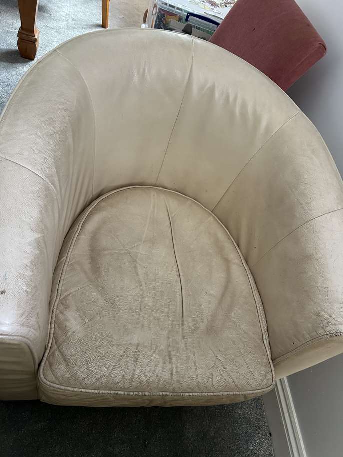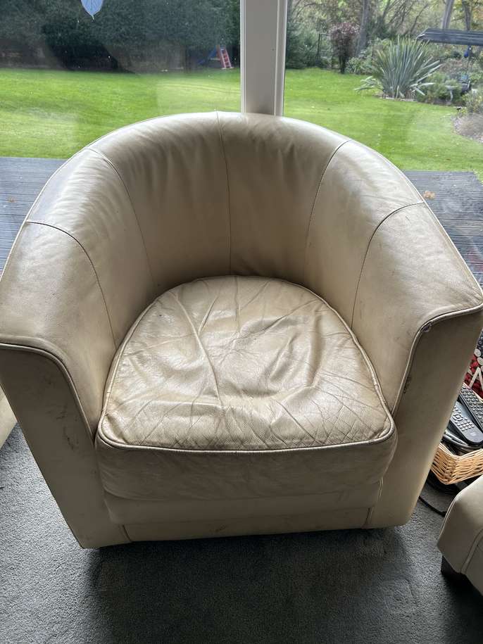 2x cream leather bucket chairs This item is in Caversham Heights GB All the details 2x cream leather bucket chairs Well used but still good Collection from Caversham Category Furniture Request This Item Ask a Question Post Message