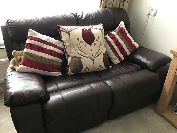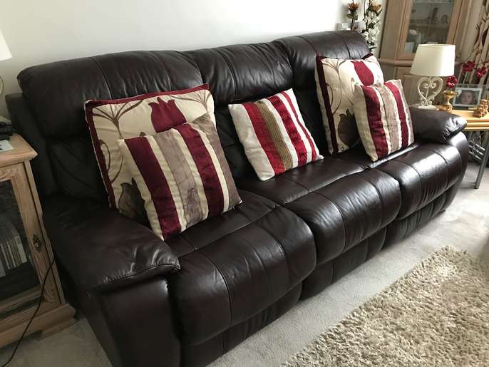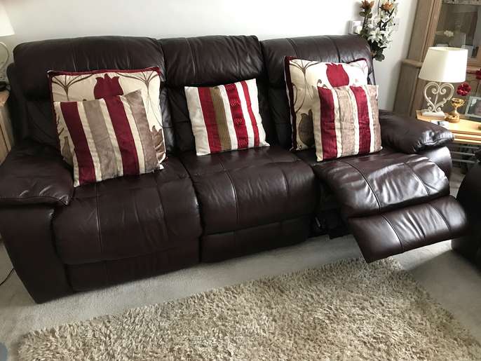 3 & 2 seater leather coaches in good condition both have electric leg recliners in full working order.