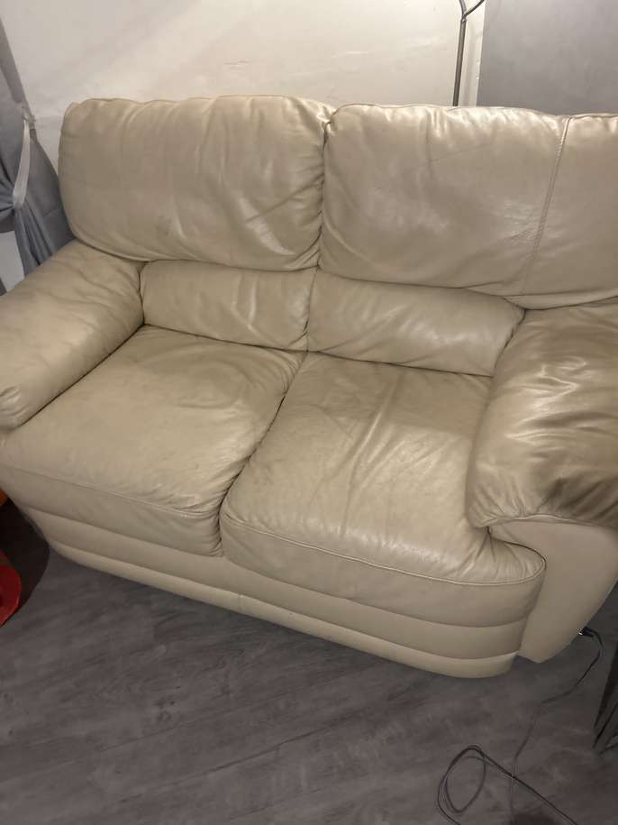3 and 2 This item is in Penwortham GB All the details 3 and 2 crème leather couches (used condition) and 1 cuddle chair Category Furniture Request This Item Ask a Question Post Message