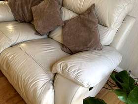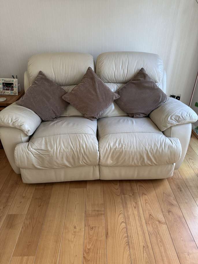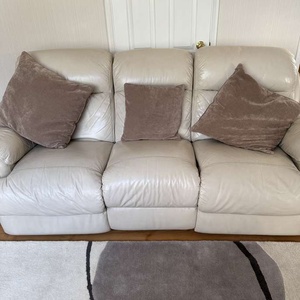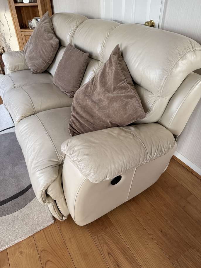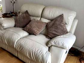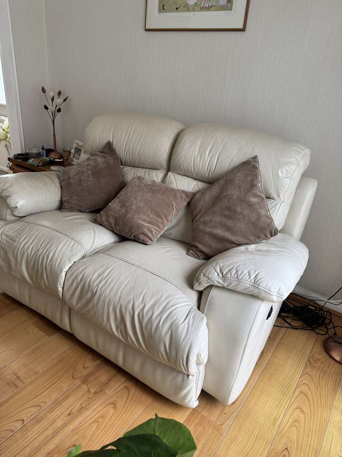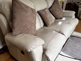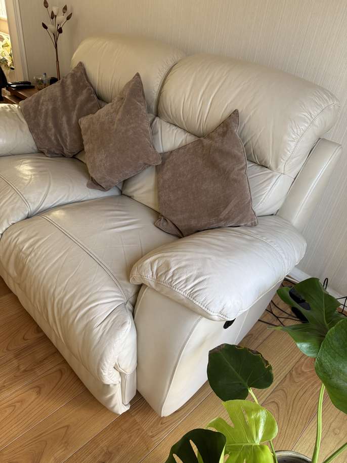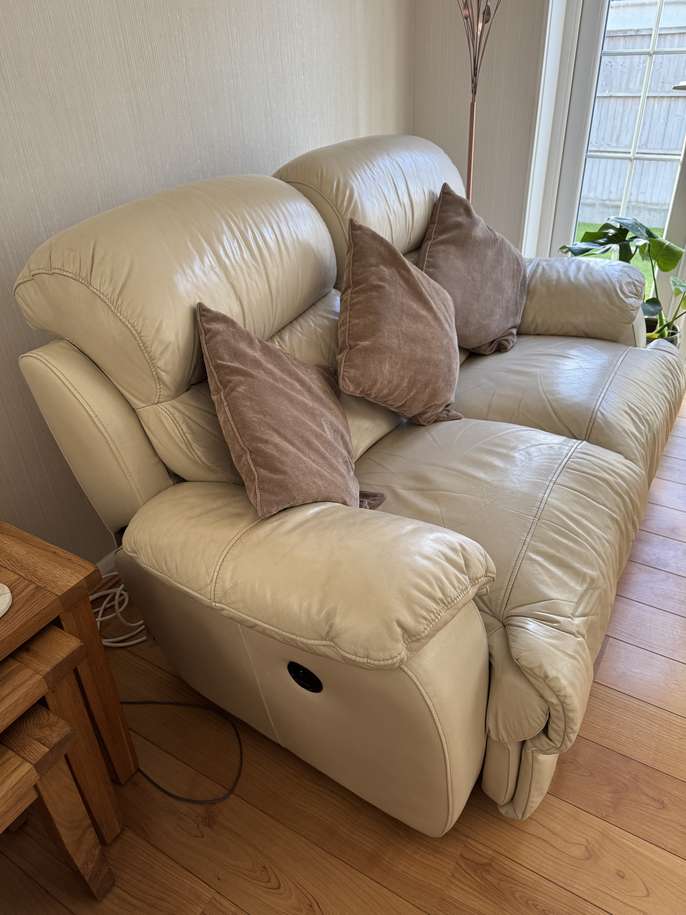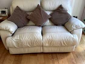 Time for a change!!! We are replacing our 2 seater & 3 seater sofa combination in Cream Milan leather. Both units have power recliners and are in very good condition. Collection only Sizes 2 seater, L 175cm x D 90cm, H 98cm 3 seater, L 235cm x D 90cm, H 98cm