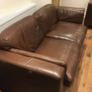 Cat scratching at end and considerable wear to cushions. Some areas of discolouration were product was used to disguise wear. Please email for further photos if interested. Matching 2 seater available (see my other post)