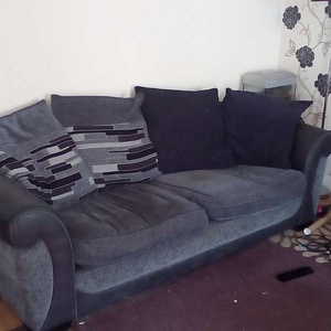 3 seater sofa originally from dfs. 7ft by 3ft. A nice comfy sofa. Has a hole as seen in pictures but doesn't affect the sofa use ( won't sink into the sofa). The white wading can be pulled back and stuck down so it covers the gap back up. Sofa still has some life left in it so will do someone a good turn.