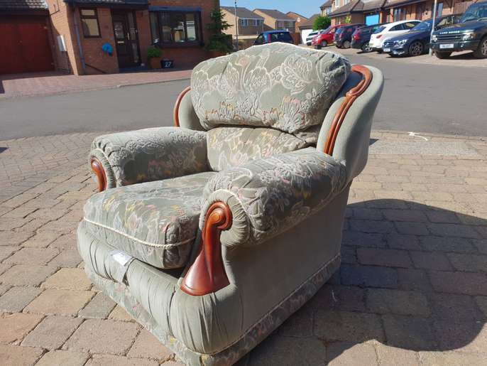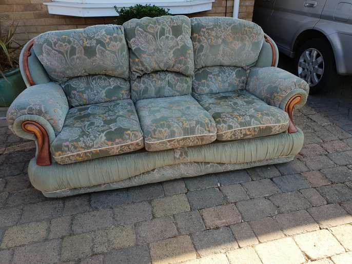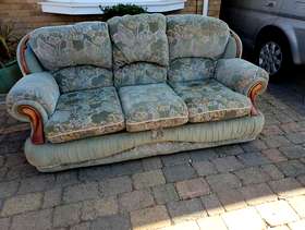 Here is a 3 seater sofa and 1 armchair in a clean reasonable usable condition. There is some fraying at back of sofa which could be repairable see photos otherwise ok.