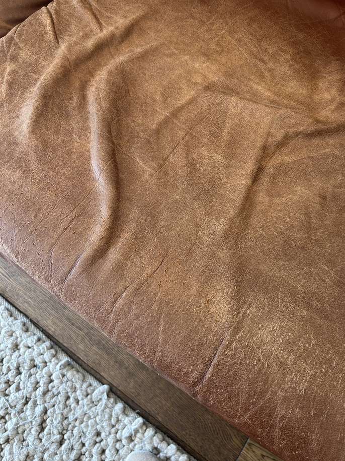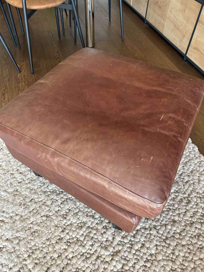 Habitat leather sofa 2 meters ling and stool 60 x 60 cm. Minor problems with the leather as seen in picture