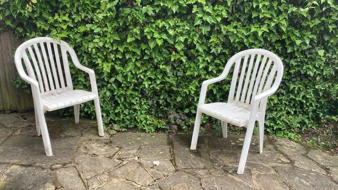 3 White plastic garden chairs