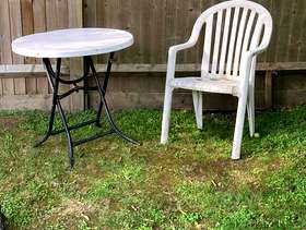 3 White plastic garden chairs. Table not available. Available for collection. (Sorry we can't deliver.) If the advert is up, it's still available. When responding, please state when you can collect (date and time slot - helpful if you give a couple of choices). Near Barnes station, London SW15. Priority given to whoever can collect soonest. Once again - when responding, please state when you can collect. No timewasters. Thank you.