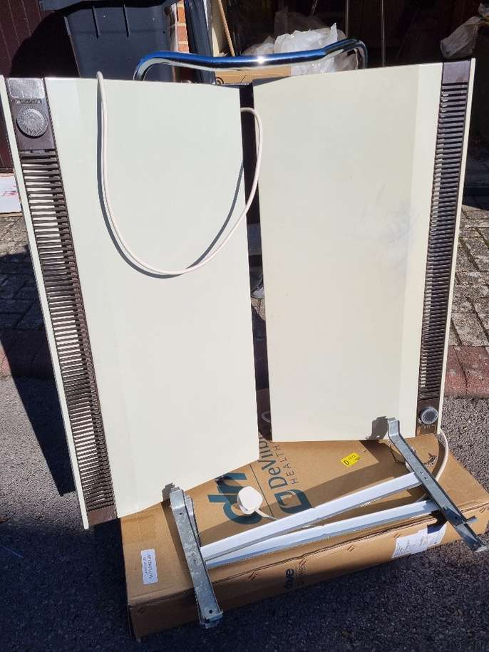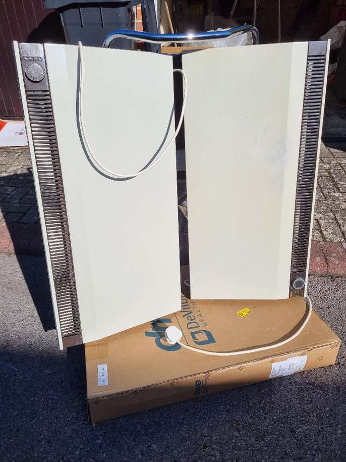 2 x Dimplex wall heaters with temperature controls and built in timers. Dimensions 830 x 430 x 60mm c/w wall mounting brackets. Tidy condition. 1 x Nobo wall heater with temperature control. Dimensions 500 x 300 x 40mm. Tidy condition.