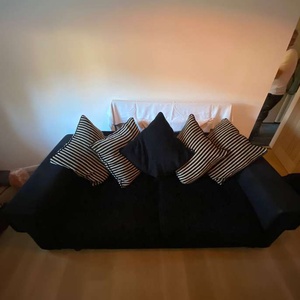 Black three seater sofa in good condition,nerds to be gone this weekend. arms detach for transportation