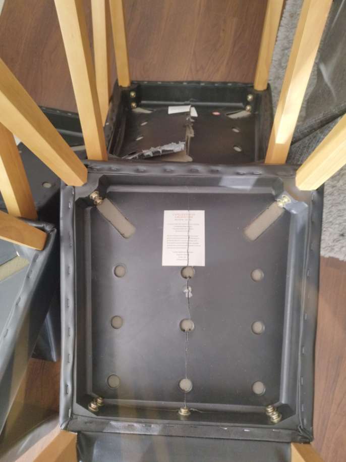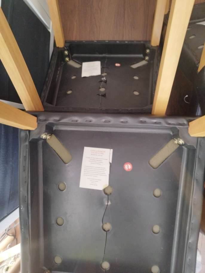 4 chairs needing repair as plastic under seating is damaged/broken Please see pictures