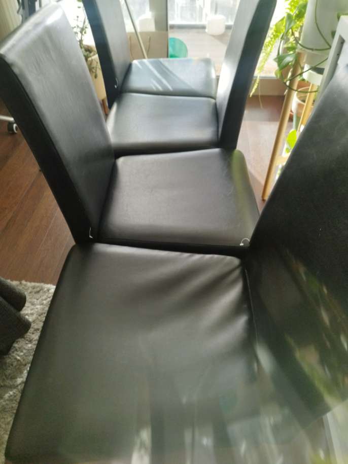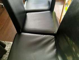 4 black faux leather chairs with wooden legs