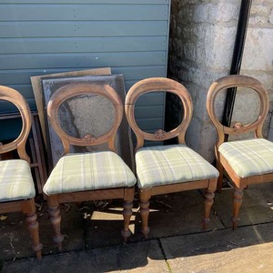 4 x period ballon back chairs. Seats new green tartan upholstery.