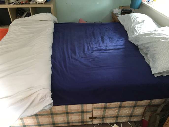 A 4ft 6 double divan bed with mattress used by my daughter, but she is getting a bigger bed. No under-bed storage or drawers. FREE TO COLLECT FROM HASLEMERE