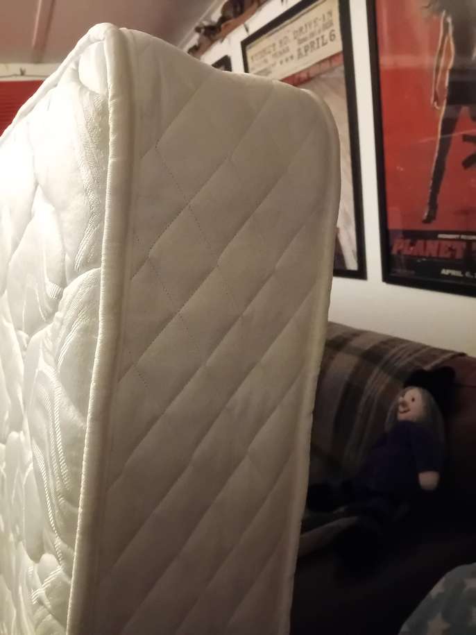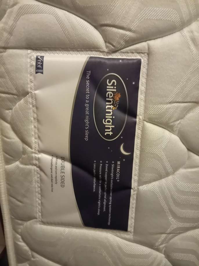 Silent night 5ft mattress. Good clean condition other than a slight small mark on one side, this happened in transportation. I've tried to show this in the picture, it actually looks worse in the pic than it does in reality. Used with a mattress protector.