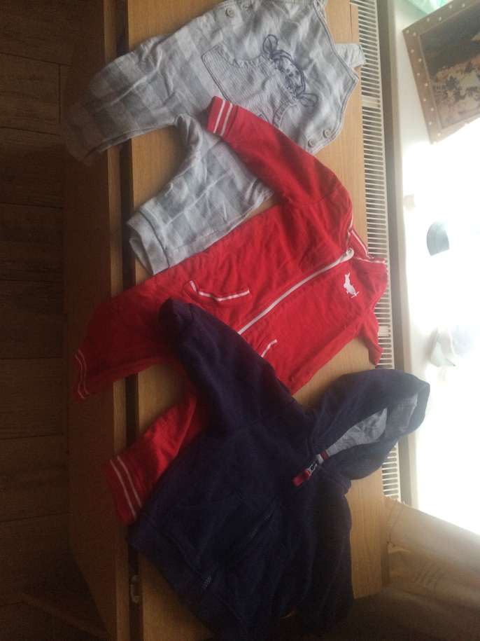 6-9 months baby boy bundle 7x sleep suits 1 t-shirt 3x joggers 2x jeans , one pair lined 2x light trousers 1x checkered shirt 4x long sleeve tees 1x coat 2x fleeced tees 1x hoodie 1x dungarees 1x onesie