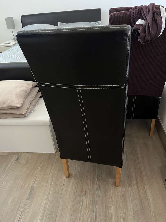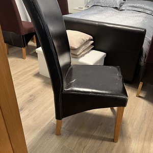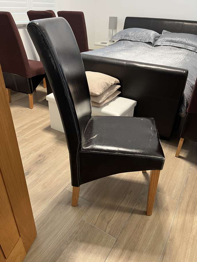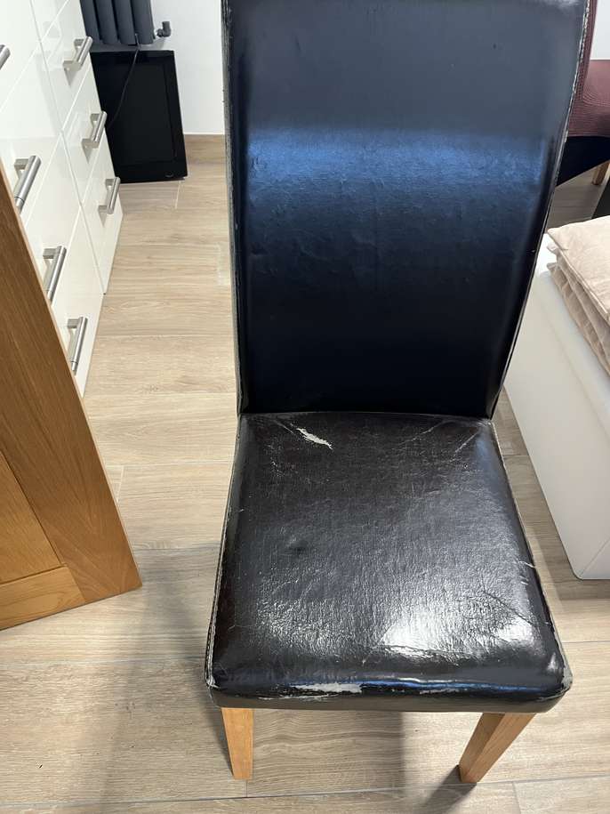 6 or 8 dining table chairs. High backs . ALL chairs NEED RECOVERING. Chairs themselves are strong and in good condition. All legs good, dismantles for easy transport ( you will have to dismantle them. Backs comes off) FREE collection from Blackfen sidcup