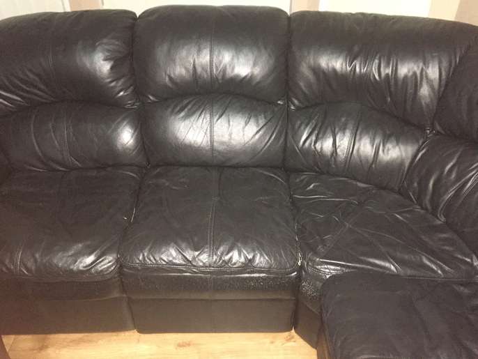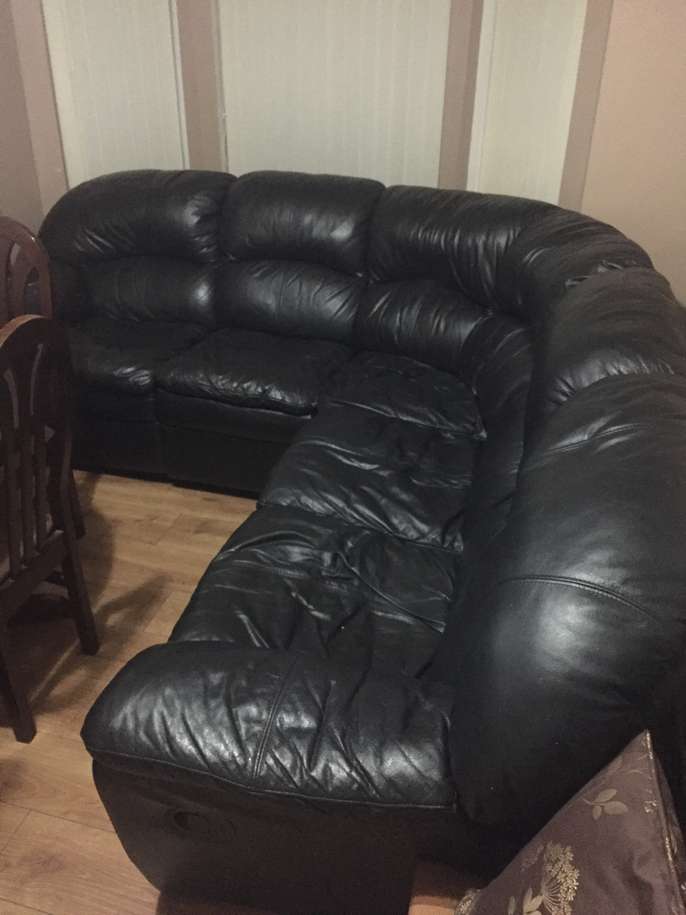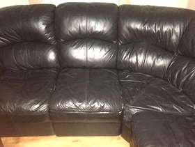 Black leather 7 seater sofa, in good condition but has a few cat scratches on but has still got a lot of life init. Originally from Land of Leather costing £1000 The sofa comes apart in 3 parts that all join together. More pictures will be added soon