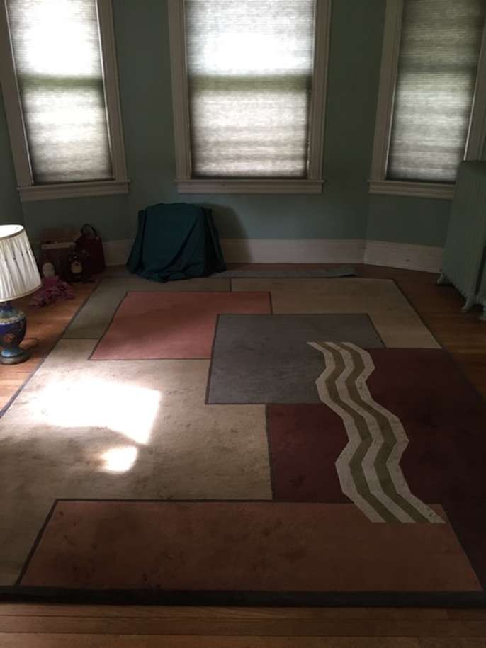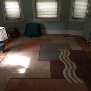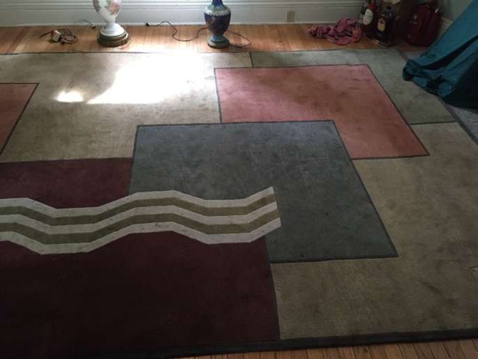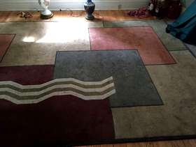 Art Deco style rug 11’8” x 8”1” Beige with blue, pink, orange, green and dark brown accents. About 10 years old. Clean - no pets, no smoking. Giving away only because I am moving. You have to roll and carry it away. Must be taken by May 31. West Side of Saratoga Springs. When replying, please include your phone number.