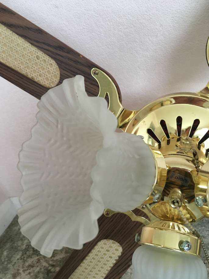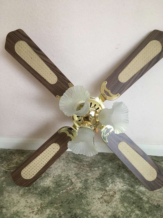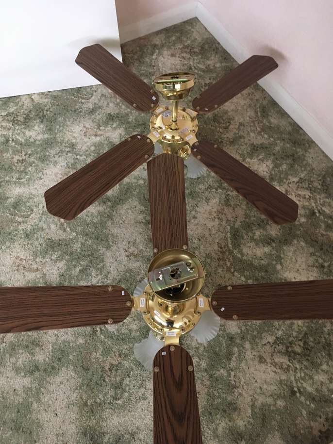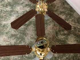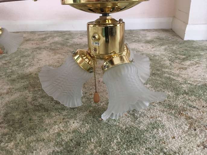 A pair of large ceiling lights with 2 speed fan. This item is in Polegate GB All the details Brass with glass shades. In perfect working order Category Home & Garden The Request Period For This Item Has Ended The request period for this item has ended Post Message