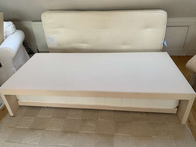 A single bed (new) that can convert to a double bed.