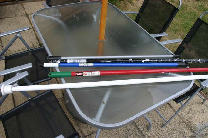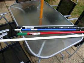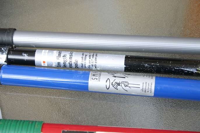 4 decorating / or whatever poles, 2 are fixed at about 1 meter, 1 is extendable to 3 meters and the other to about a meter and a half, there is also an extending shower curtain rod, all in excellent condition and working. Staines.