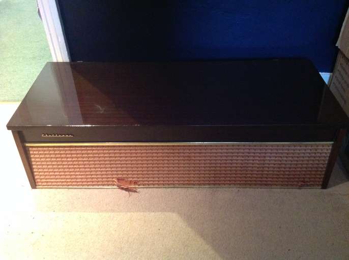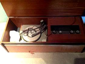 Alba Challenge radiogram - not working but with at least some parts needed for repair or could be used as mid-century decor. Circa 1960. The speaker fabric needs repairing or replacing. I have the legs but not the screws, although these could easily be replaced. Priority given to whoever can can collect first.