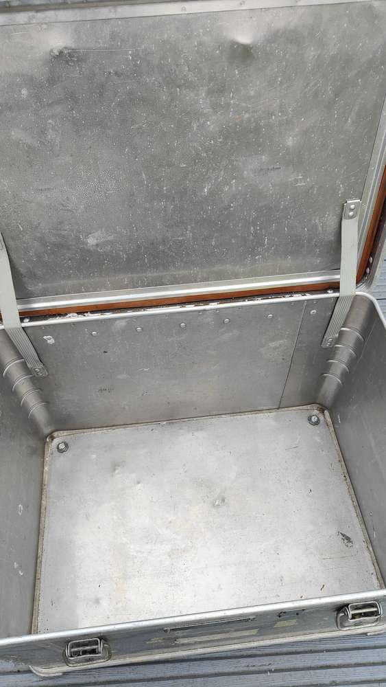 Aluminium Trunk dimensions 65 X 45 X 43cm. Good little trunk for storage, it has two securing latches. Free to pick up from Wool, Dorset.