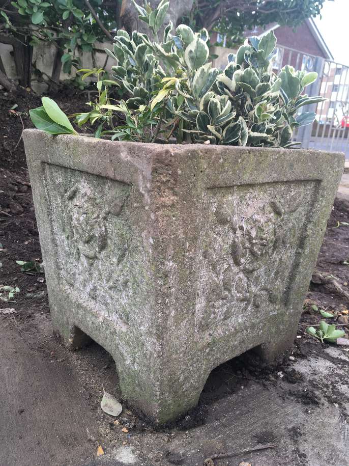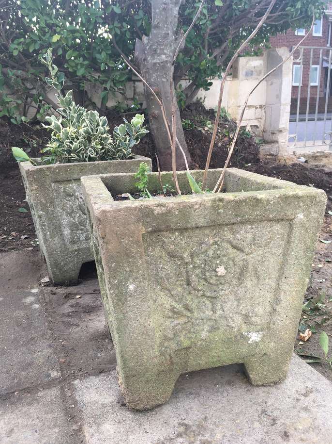 2 really sturdy antique concrete planters. Very heavy, but lovely for an entrance or patio. Please pick up from Shoreham by Sea