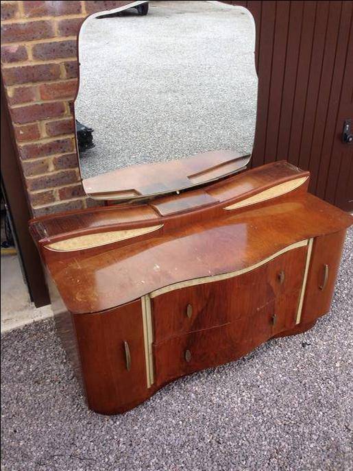 Women's dressing table with integrated mirror. Is in generally good condition but really needs a good varnish and sand to bring it back to its former glory.
