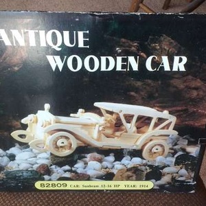 Wooden car kit for antique 1914 Sunbeam car. Pre-cut pieces to put together yourself. Would make great Christmas present for adult or older child.