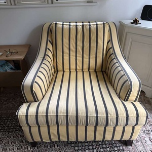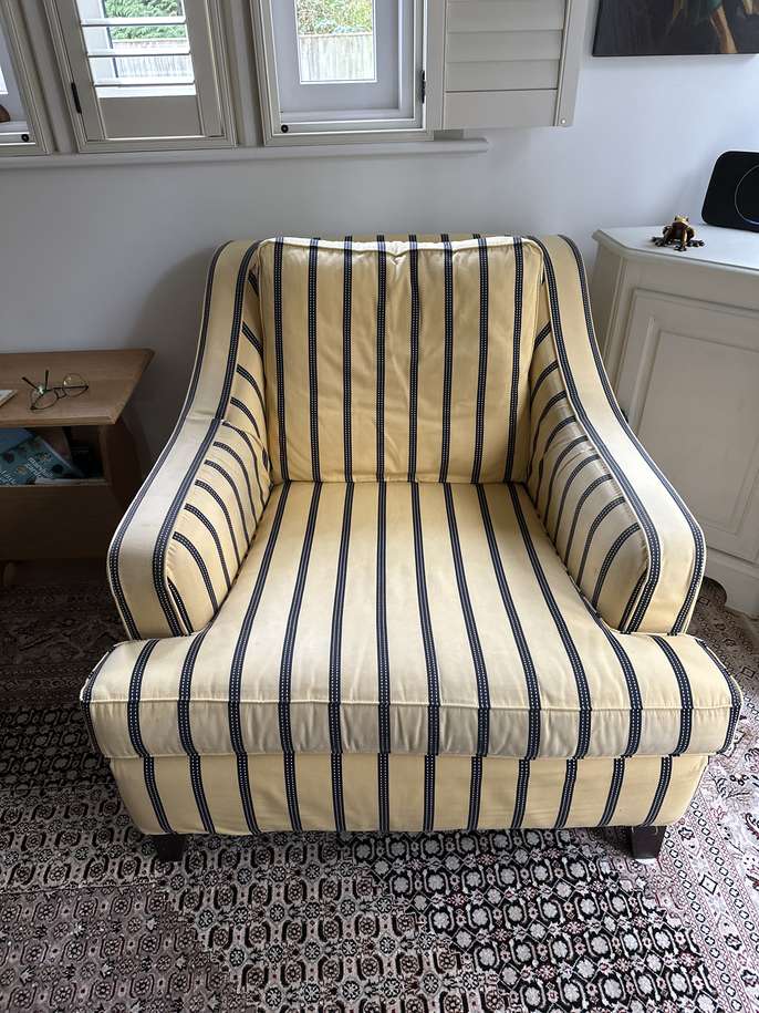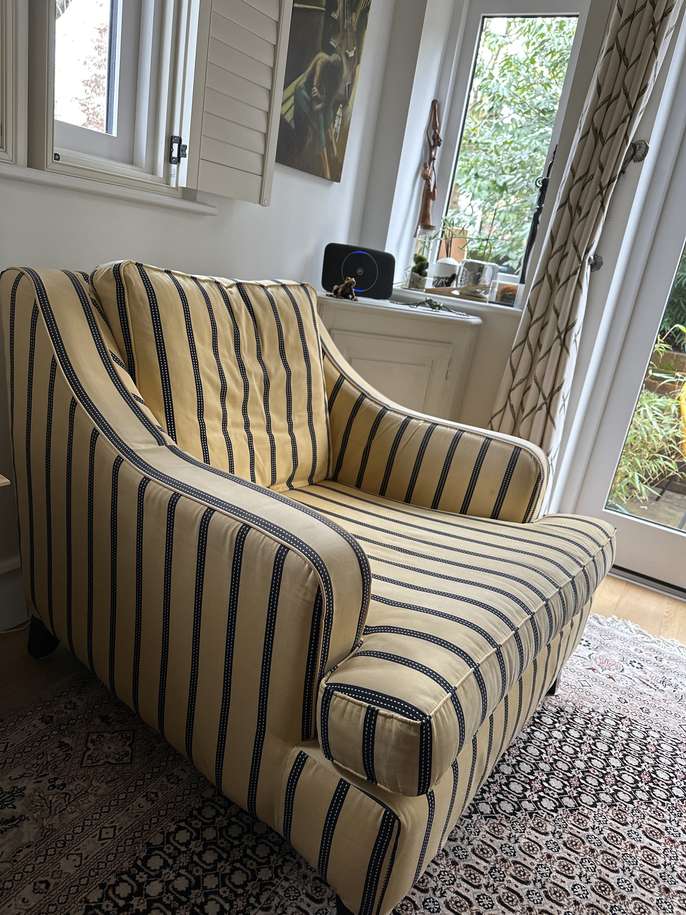 Chair is comfortable and has no issues with the structure except now getting a bit old so fabric is showing some discolouration. It’s is quite large height 80cm, depth and width 95cm. Free to anyone who will collect. It is heavy and substantial size so you will need a large car/van.
