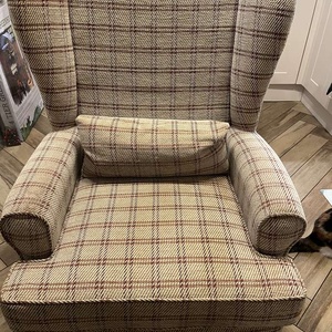 HSL armchair with matching lumbar cushion. In good repair. Requires collection from Thorndon.
