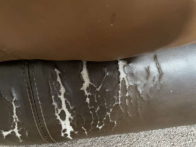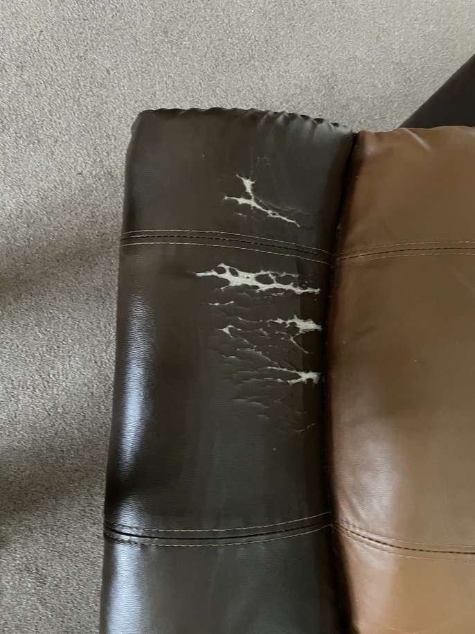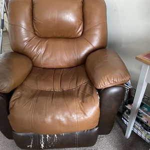 Two/tone brown reclining Armchair. Unfortunately it does have scuff marks on the front foot area. The electric recliner does work.