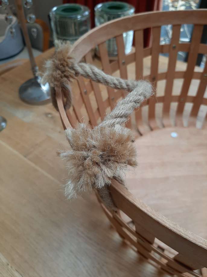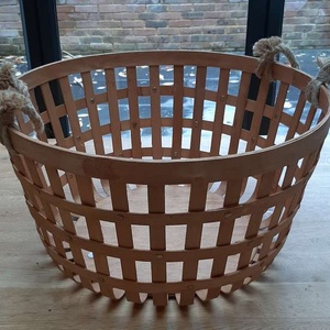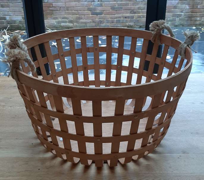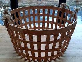 A lightweight wooden basket, free to a good home. 50cm wide x 28cm high. Useful for storing towels/cloths or similar. Not suitable for heavy items.