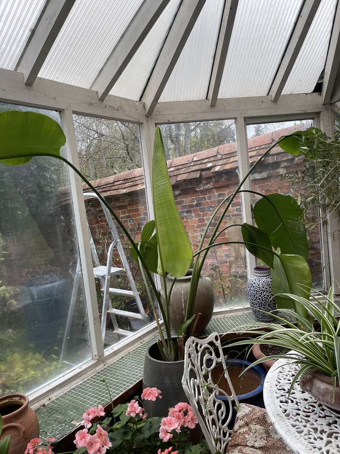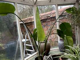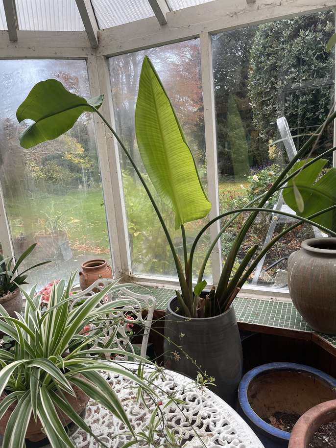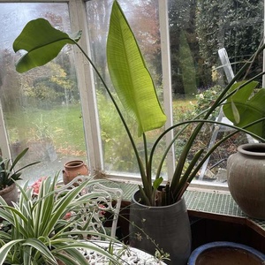Very tall plant. Healthy in a grey pot