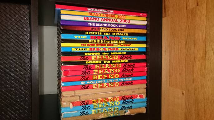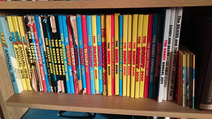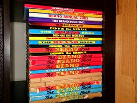 Very large collection of Beano, Dandy, Whizzer & Chips, Topper, Cor!! etc annuals, and two large boxes of Beano and Dandy comics. The annuals date from 1974 right up to 2014. Comics from early 1990s to early 2000s. You MUST have a car / van / wheelbarrow / tractor to transport these. Very heavy. Please bring your own boxes.