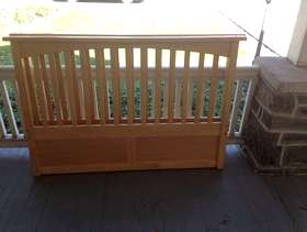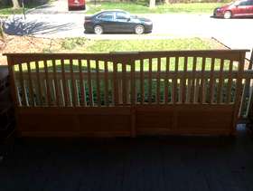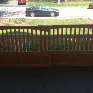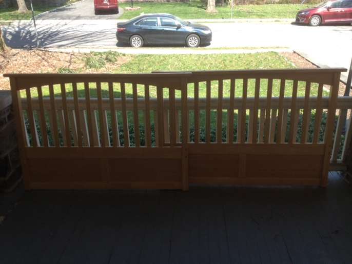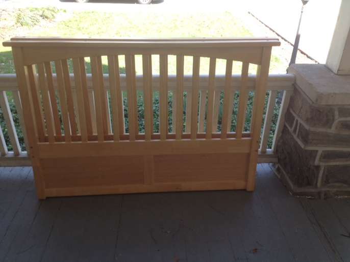 A finished wooden headboard and footboard; Dimensions: 58" (L) x 38.5" (H) x 2.5" (W)