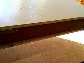 A black and white "Beaver & Tapley 33" drawer, for wall mounting. Beaver & Tapley 33 was a range of popular wall-mounted furniture years ago - and still used today. Heavy, very solid and well made. Please note that because it is heavy (and that is before you store anything in it!) this drawer must be mounted to a sturdy wall - unsupported plasterboard won't do. This piece is 33 inches wide. It goes back a few decades. It is white with a black Ash front. The white is a little faded and has minor cosmetic marks - see the photos. The black Ash also has tiny nicks - easily re-stained. Comes complete with mounting bracket (see the last picture) that allows you to adjust it many ways to get it to hang right, nicely aligned with other units if that is what you want.