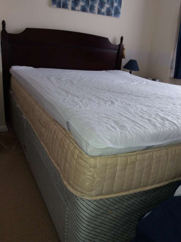 Kingsize bed with Dunlopillo mattress & headboard. Memory foam topper can be included.