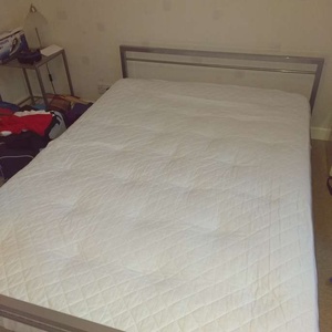 Metal double bed frame, matt metallic.